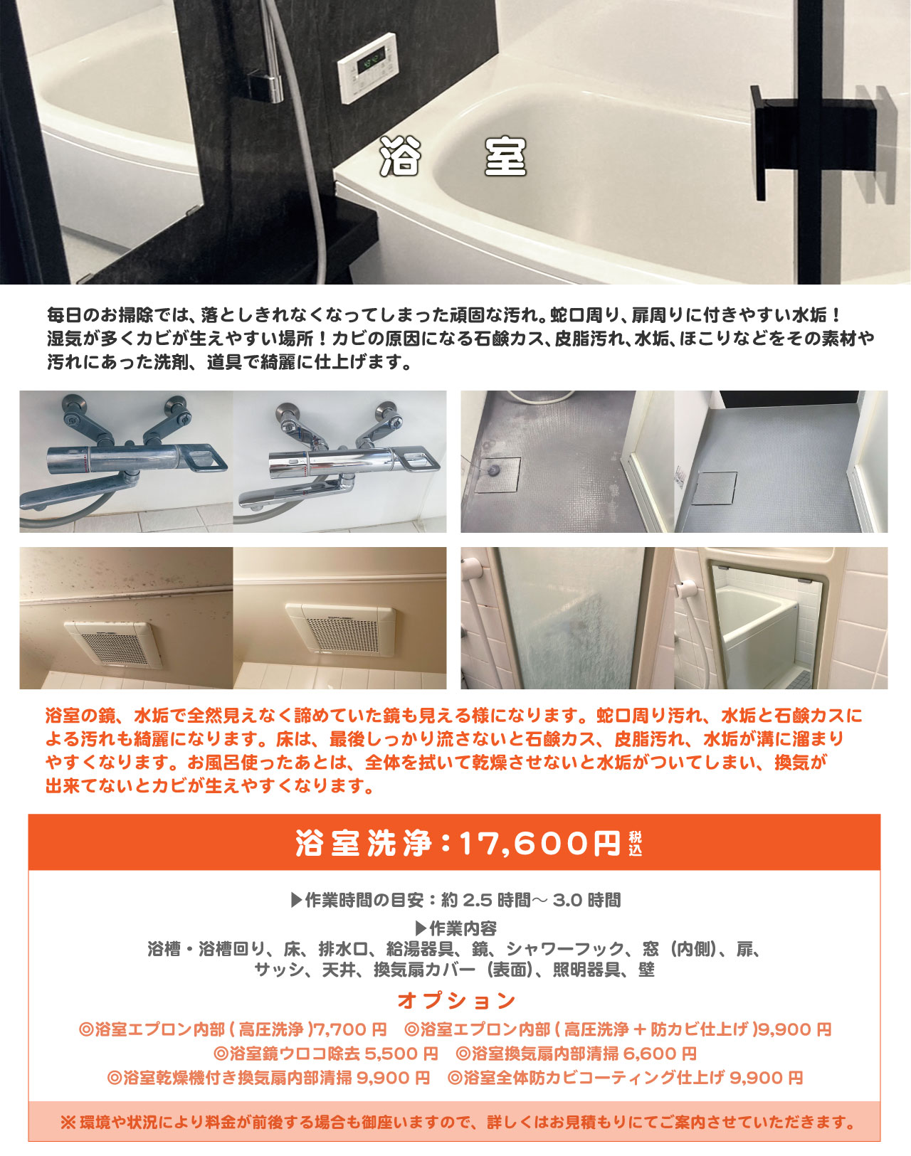 浴室 レンジフード エアコン キッチン トイレ・洗面所 定期清掃